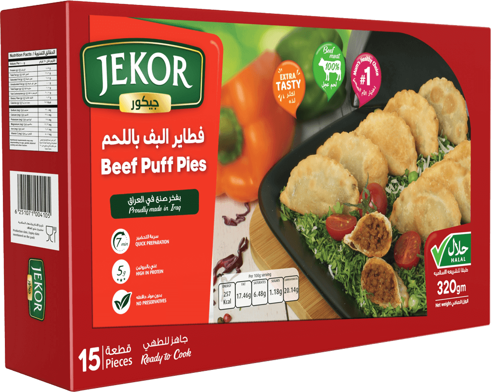 Jekor meat pies are prepared with crunchy delicious dough stuffed with tomato sauce, beef, and secret peppers.