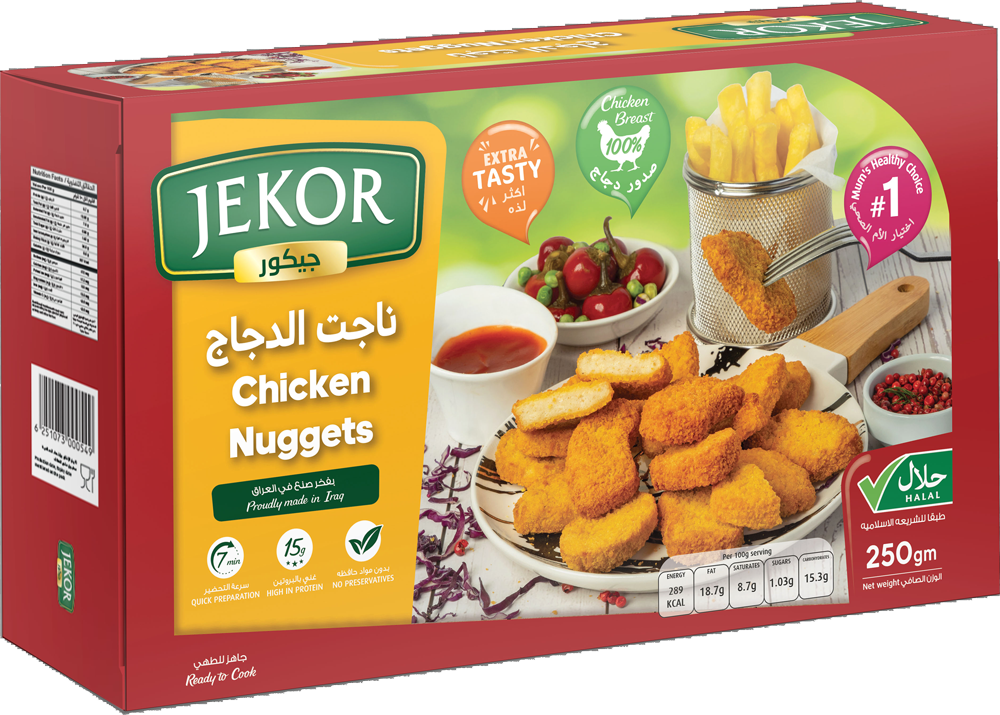 A juicy and crusty piece of good fried chicken breast, prepared with its secret recipe of spices and covered with golden rusk to give a mouth-watering flavour of Jekor Chicken Nuggets.