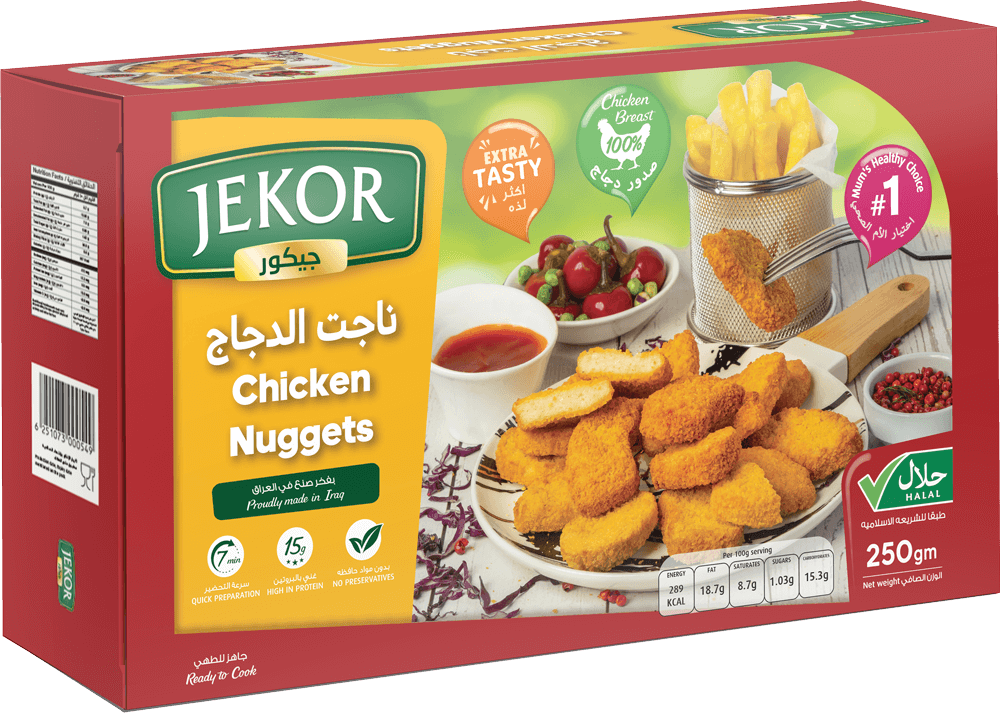 A juicy and crusty piece of good fried chicken breast, prepared with its secret recipe of spices and covered with golden rusk to give a mouth-watering flavour of Jekor Chicken Nuggets.