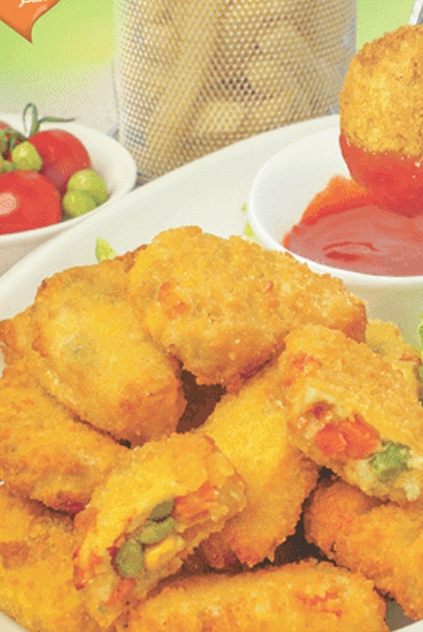 A juicy and crusty designed pieces of a good and fresh variety of vegetables including peas, carrots, potatoes, onions, and more. It is prepared with its secret recipe of spices and covered with golden rusk to give an unforgettable taste of joy to the kids.