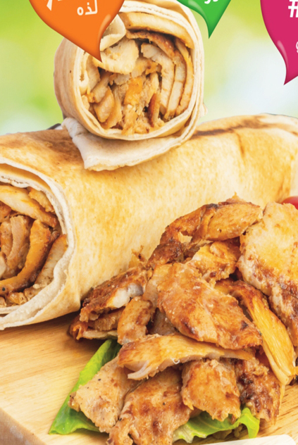 Thinly sliced cuts of chicken, prepared with lemon special peppers, and other ingredients. Fully cooked over the skews and ready to be heated and served. Usually served with fries, pickles, and garlic paste rolled in pita bread.