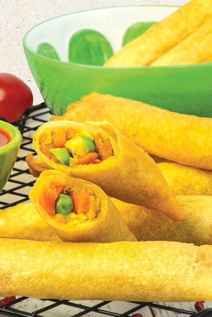 Deep fried, stir fried mixed vegetables in a very overwhelming mix of spcies and vegetables that include peas, carrots, corn, and potato, wrapped in a crispy crunchy golden pastry.